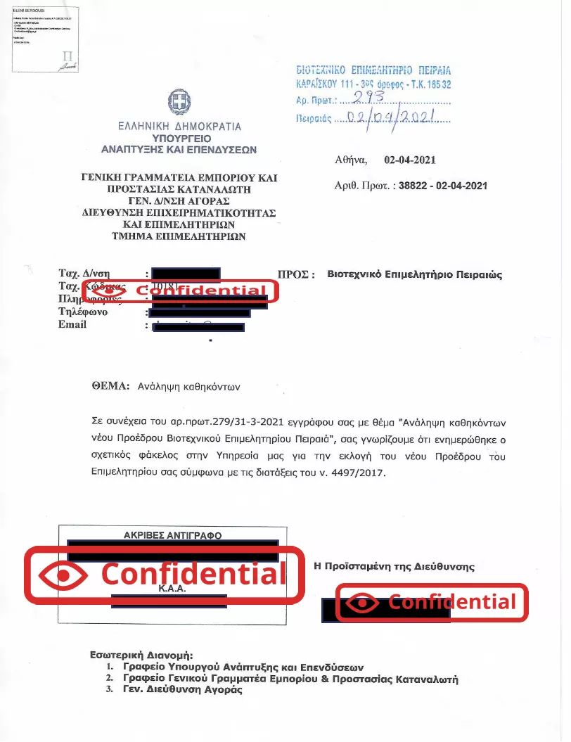 Προς ενημέρωση των μελών μας και σε απάντηση των συνεχόμενων, συκοφαντικών, προσβλητικών και αναληθών δημοσιευμάτων, που αφορούν στην εκλογή Νέου Προέδρου του Βιοτεχνικού Επιμελητηρίου Πειραιά, και για να σταματήσει επιτέλους κάθε αμφισβήτηση και υπονόμευση του Β.Ε.Π, δημοσιοποιούμε την επίσημη απάντηση του αρμόδιου Υπουργείου Ανάπτυξης και Επενδύσεων, η οποία επιβεβαιώνει τη νομιμότητα και ορθότητα των διαδικασιών που ακολουθήθηκαν από το Επιμελητήριο.