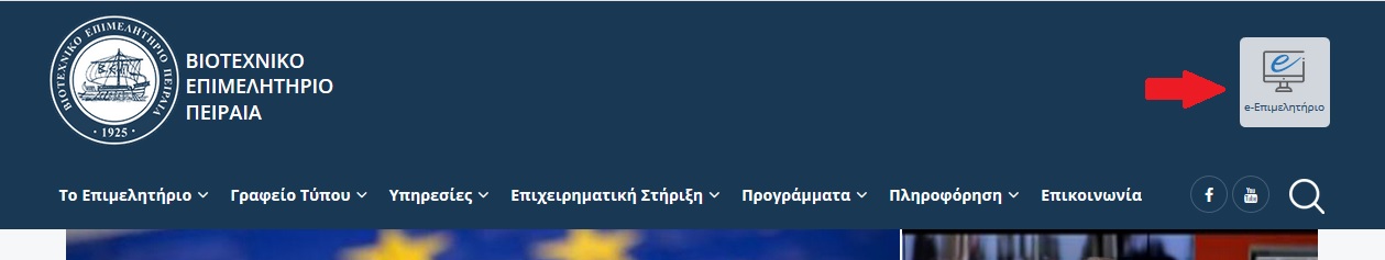 ΒΗΜΑ 1ο: Επιλογή της υπηρεσίας του e- Επιμελητηρίου μέσω της ιστοσελίδας www.bep.gr πατώντας το μπάνερ του e - Επιμελητηρίου (Εικόνα 1 ).
