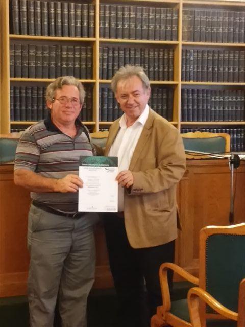 Τα Πιστοποιητικά απένειμαν στους επιτυχόντες στις εξετάσεις ο Πρόεδρος , ο Α΄ Αντ/δρος και ο Διευθυντής, του Βιοτεχνικού Επιμελητηρίου Πειραιά, κ.κ. Ανδριανός Μιχάλαρος, Γεώργιος Κωνσταντόπουλος και Μιχάλης Γιάγκας, αντίστοιχα.