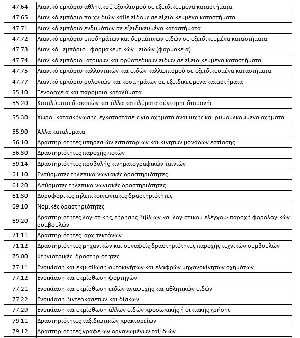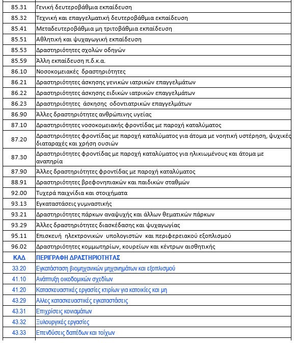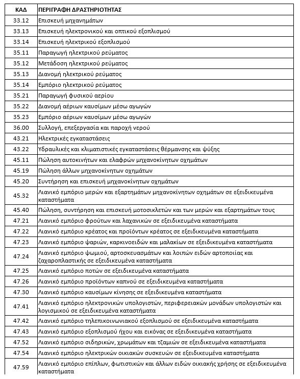 Οι «δικαιούχοι πληρωμής» (σ.σ. φυσικά ή νομικά πρόσωπα που είναι οι τελικοί αποδέκτες των χρηματικών ποσών τα οποία αποτελούν αντικείμενο της πράξης πληρωμής, σύμφωνα με την περίπτωση 13 του άρθρου 2 του Κανονισμού (ΕΕ) 2015/751) οι οποίοι διαθέτουν έναν από τους παρακάτω Κ.Α.Δ. (Σύμφωνα με την απόφαση 45231/2017) (ως κύρια ή δευτερεύουσα δραστηριότητα), υποχρεούνται να δηλώσουν στην Α.Α.Δ.Ε. τον/τους επαγγελματικό/ους λογαριασμό/ούς:)
