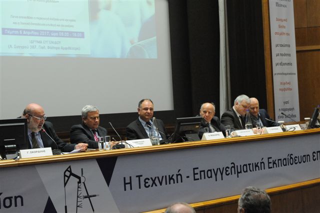 "Θα ήθελα να συγχαρώ ιδιαίτερα τους διοργανωτές, το Βιοτεχνικό Επιμελητήριο Πειραιά, το Ίδρυμα Ευγενίδου, το Ινστιτούτο Μελετών της ΓΣΕΒΕΕ και τη Διεύθυνση Δευτεροβάθμιας Εκπαίδευσης Πειραιά, για το ενδιαφέρον που δείχνουν για το ζήτημα της τεχνικής εκπαίδευσης διαχρονικά.