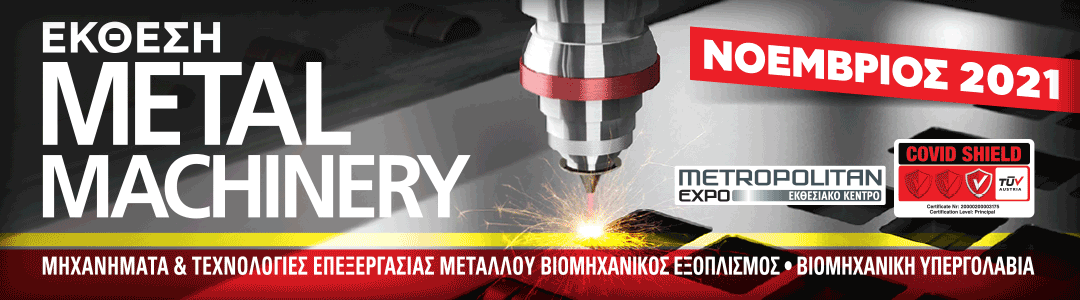 Η METAL MACHINERY, η επαγγελματική έκθεση για τα μηχανήματα και τις τεχνολογίες επεξεργασίας μετάλλου, τον βιομηχανικού εξοπλισμού και τη βιομηχανική υπεργολαβία, έρχεται για να παρουσιάσει τις εξελίξεις στη βιομηχανία από τις 5 έως τις 7 Νοέμβριου 2021 στο εκθεσιακό κέντρο METROPOLITAN EXPO.
