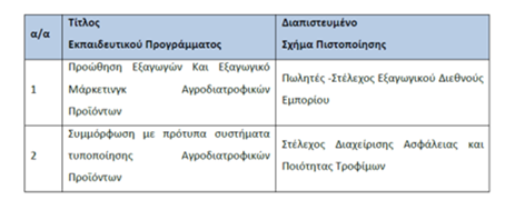 - Πιστοποίηση στη βάση του διεθνούς αναγνωρισμένου προτύπου ΕΛΟΤ ΕΝ ISO/IEC 17024, σε αντιστοιχία με τα Εκπαιδευτικά προγράμματα που θα παρακολουθήσουν: