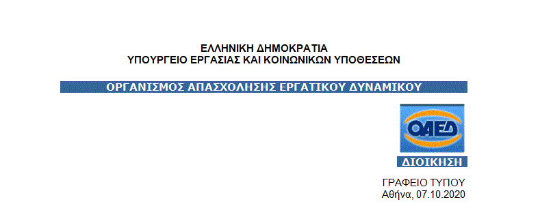 των προγραμμάτων απασχόλησης του ΟΑΕΔ στο 3ο τρίμηνο του 2020