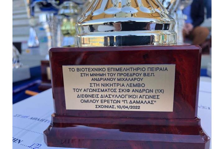 Πιστό στην απόφαση του αειμνήστου Προέδρου του, Ανδριανού Μιχάλαρου, που ενστερνίσθηκε τις αξίες και τις αρχές του ιστορικού Ομίλου Ερετών Πειραιώς και θεσμοθέτησε την αθλοθέτηση ενός επάθλου στους ετήσιους κωπηλατικούς αγώνες του Ομίλου , το Βιοτεχνικό Επιμελητήριο Πειραιά αθλοθέτησε και εφέτος έπαθλο, στην μνήμη του, το οποίο απονεμήθηκε από τον Πρόεδρο Β.Ε.Π., Γιώργο Παπαμανώλη-Ντόζα, στους αγώνες που έγιναν την Κυριακή 10 Απριλίου 2022, στο Ολυμπιακό Κωπηλατοδρόμιο του Σχινιά, στο Μαραθώνα.