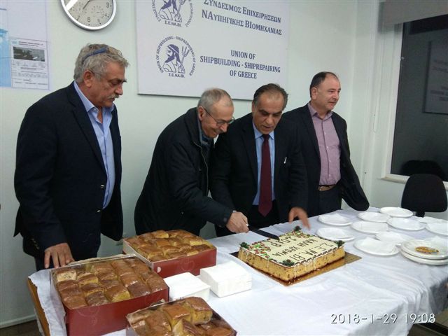Ο Πρόεδρος του Βιοτεχνικού Επιμελητηρίου Πειραιά, κος Ανδριανός Μιχάλαρος, παρευρέθηκε και απηύθυνε χαιρετισμό στην εκδήλωση κοπής της πρωτοχρονιάτικης πίτας του Συνδέσμου Επιχειρήσεων Ναυπηγικής Βιομηχανίας (ΣΕΝΑΒΙ), η οποία πραγματοποιήθηκε τη Δευτέρα 29/1/2018, στα γραφεία του συνδέσμου,παρουσία μεγάλου αριθμού μελών του και μελών του Βιοτεχνικού Επιμελητηρίου Πειραιά.